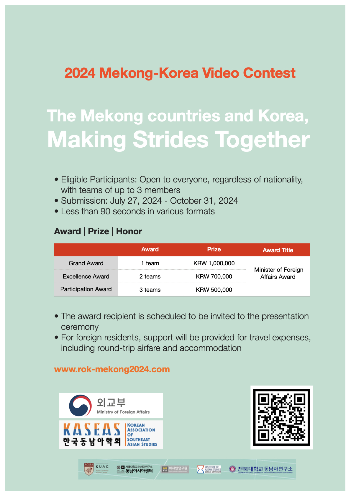 - 제출 언어: 한국어/메콩국 언어 떠는 영어 *한국어-메콩 국가 언어로 제출 시 영문 자막 필수
